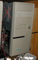 Meine kleine Spiele-Kiste. Wurde eigendlich nur für Quake gekauft und erfüllt darüber hinaus nicht viele Zwecke. (Preisfrage: welche Zwecke kann ein Windows98 Rechner auch schon erfüllen, außer dem, möglichst viele persönliche Daten an MS zu liefern und möglichst gute Schlupflöchen für Hacker zu bieten???) |